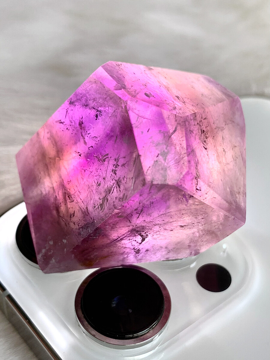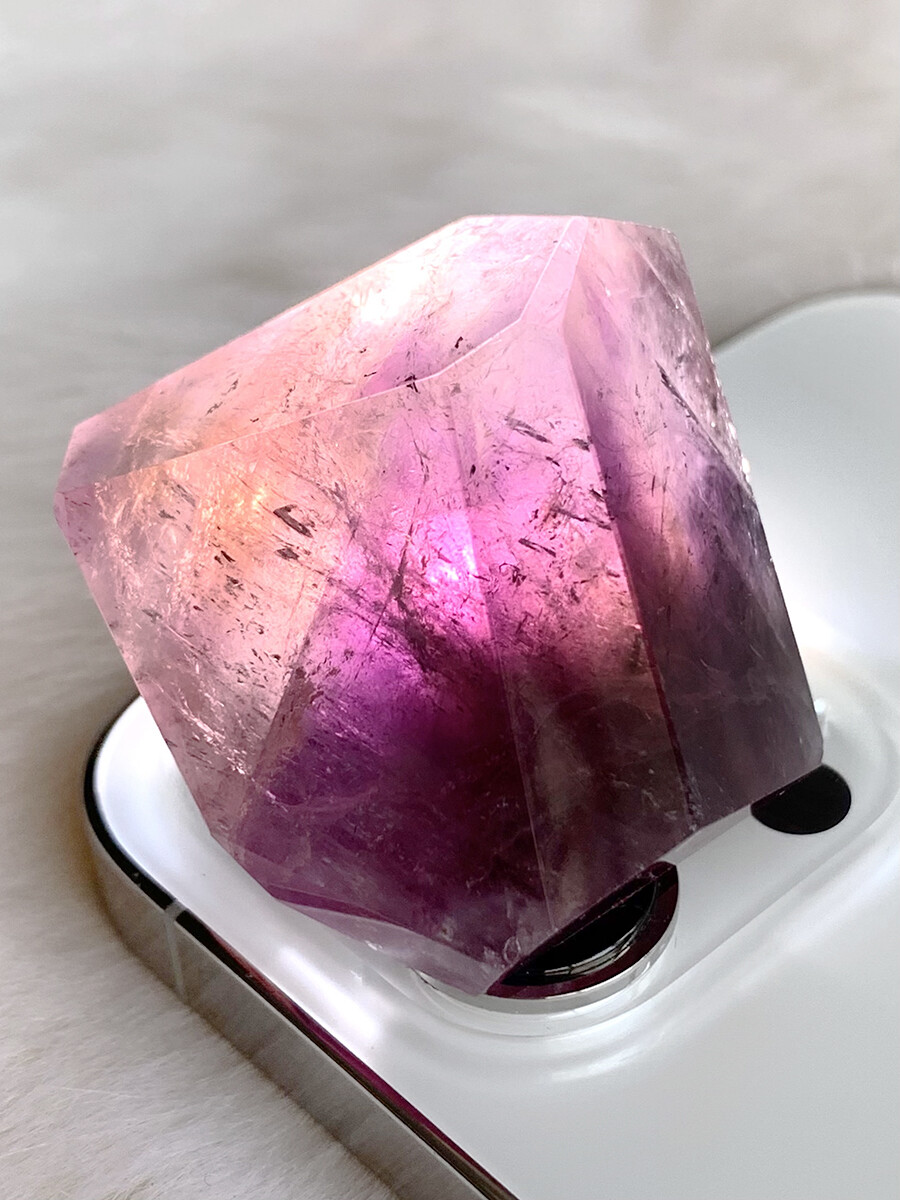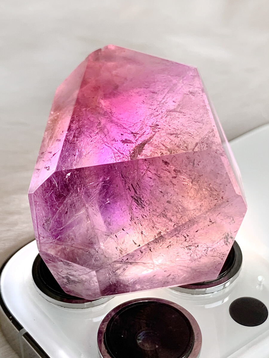 짙은 퍼플 속 은은한 시트린 포인트가 들어간 아메트린 프리폼