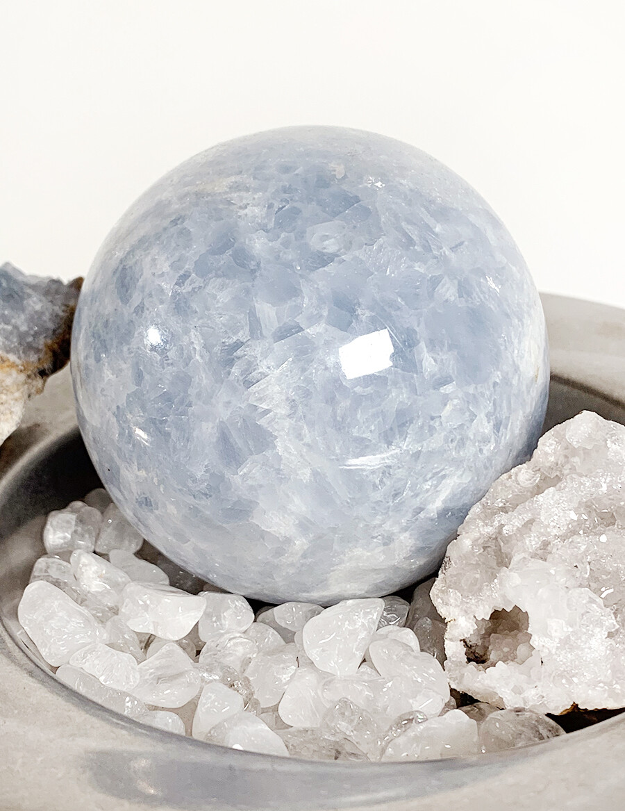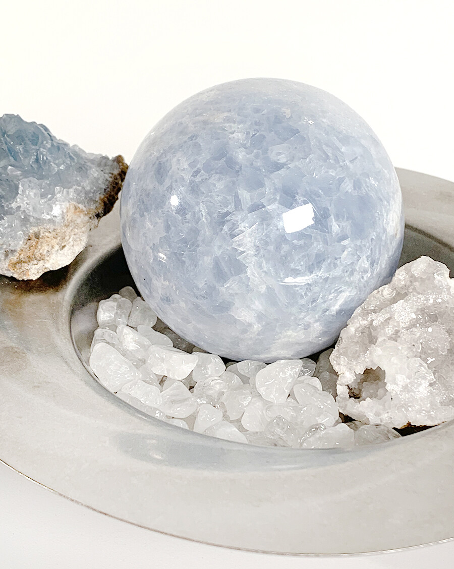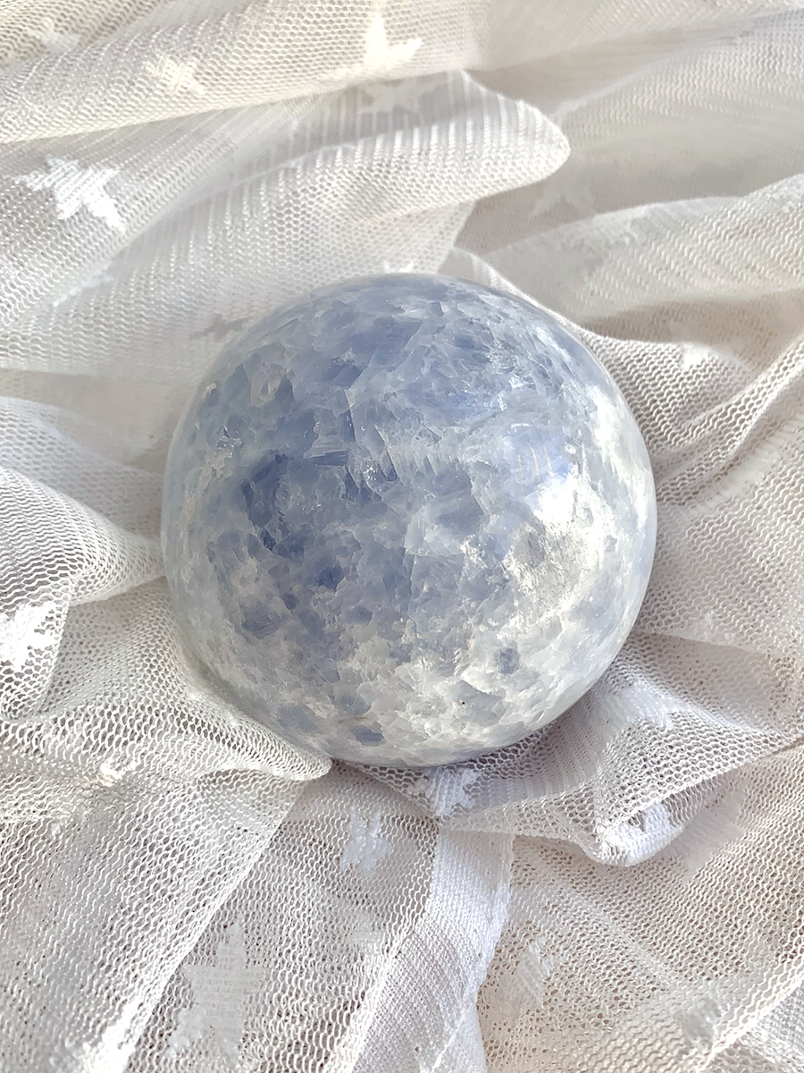 부드러운 파스텔 빛을 자랑하는 블루 칼사이트 스피어