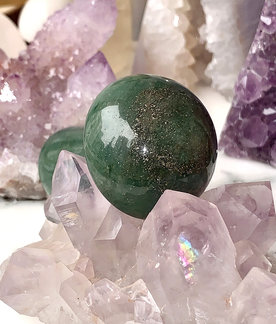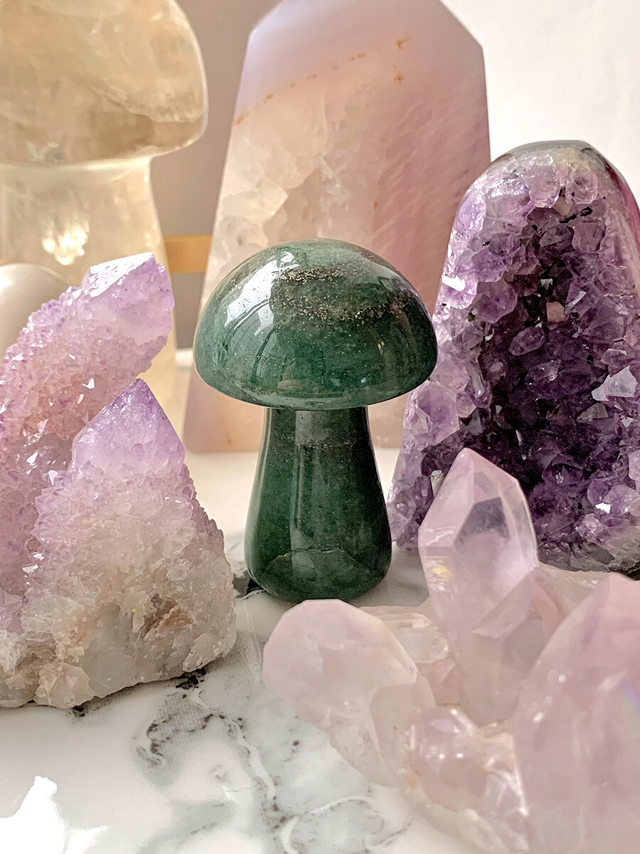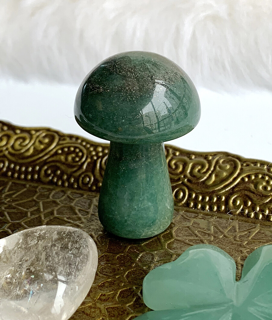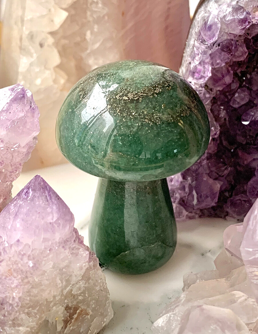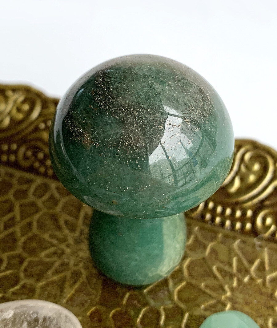 green aventurine mushie w/pyrite