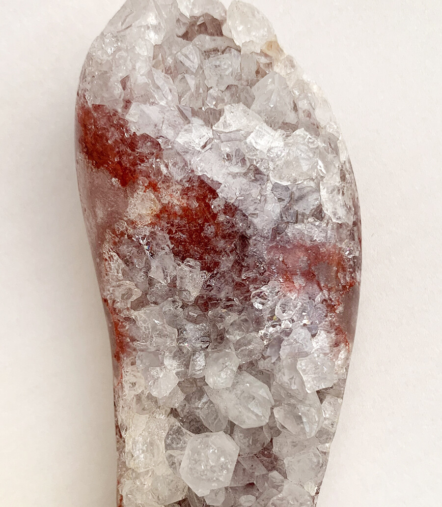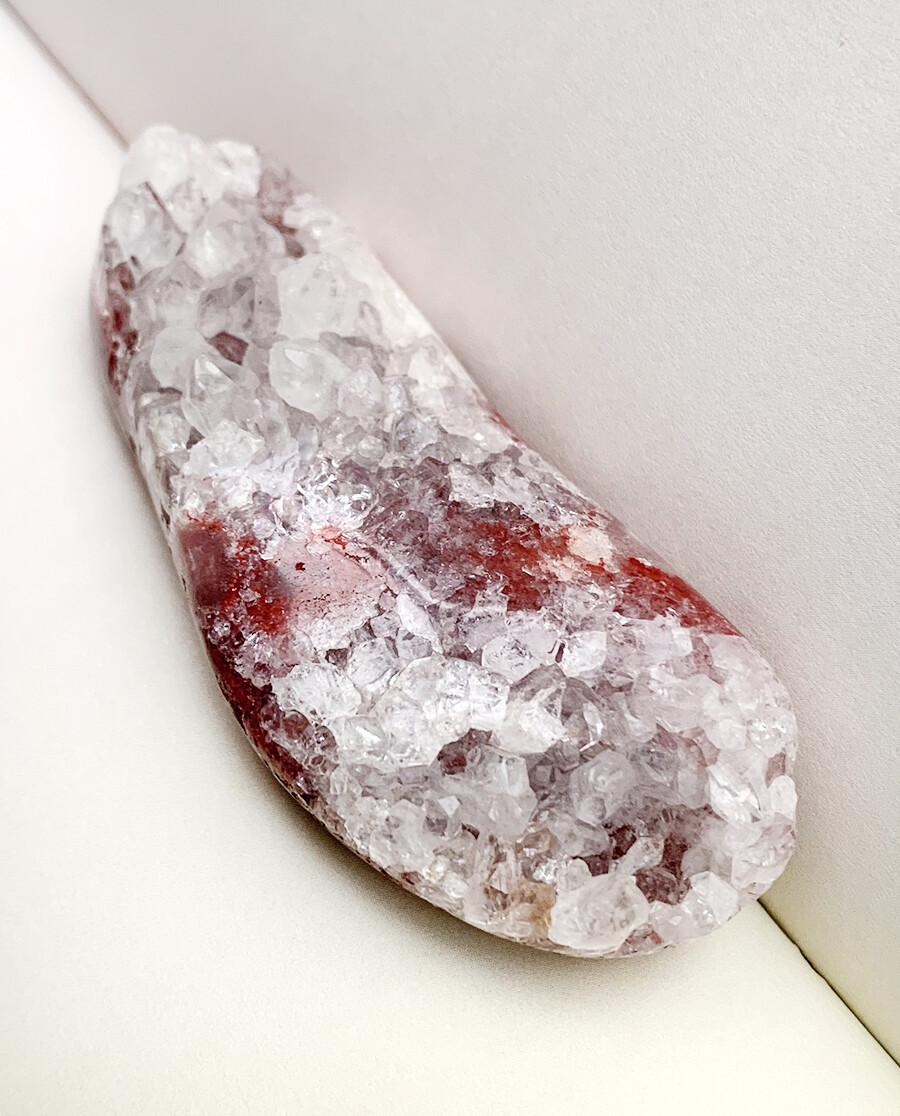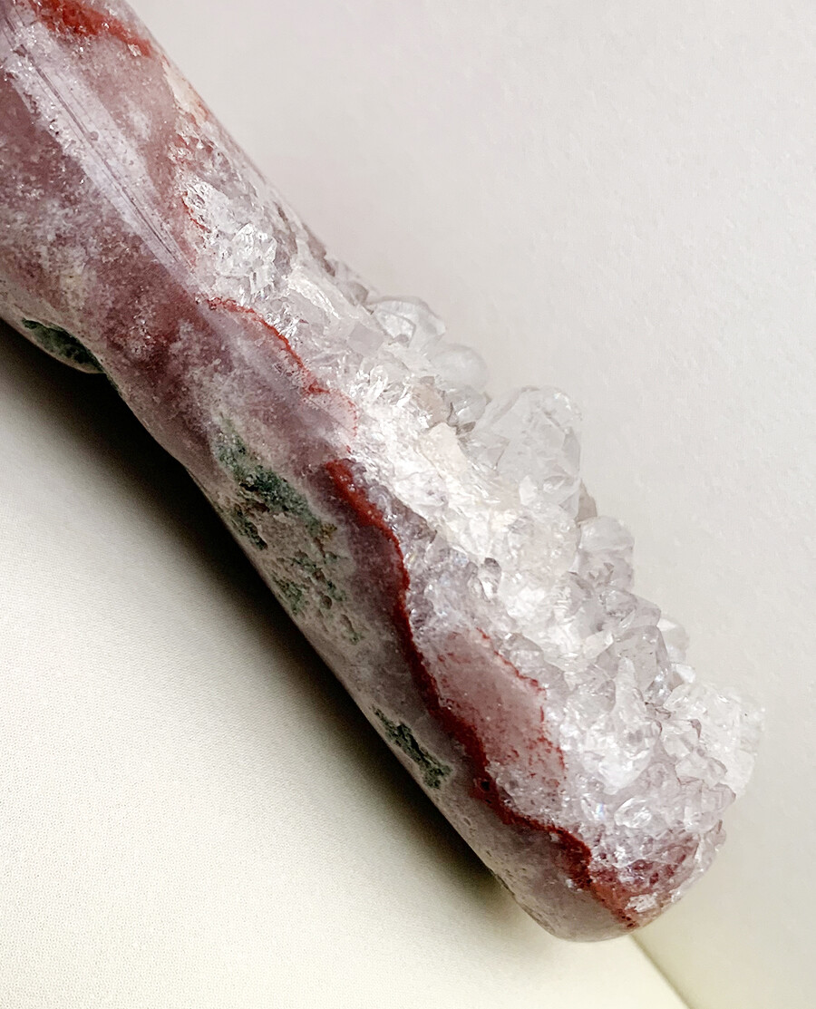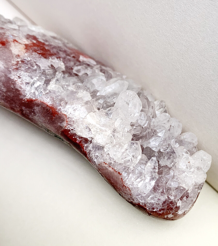 윗 부분은 얼음 결정처럼 투명한 쿼츠 클러스터로 이루어져있고