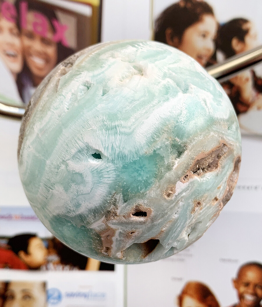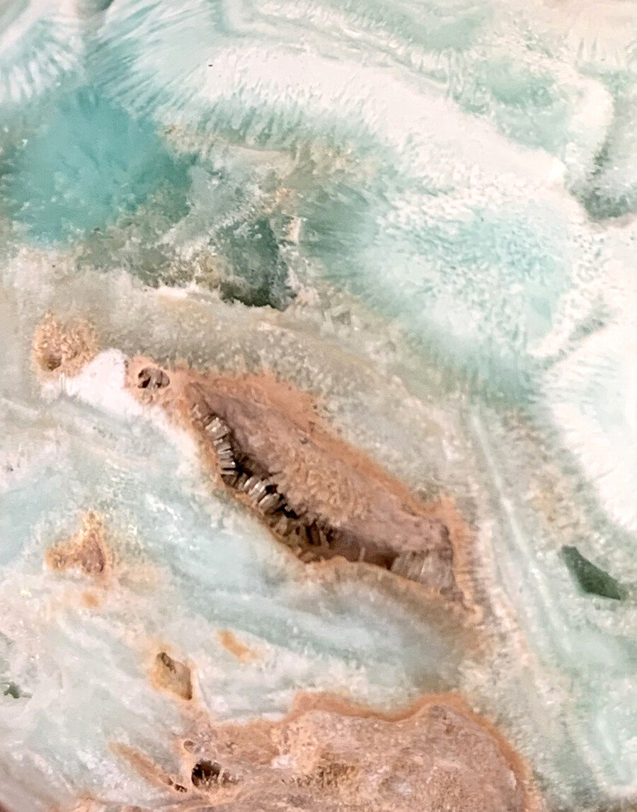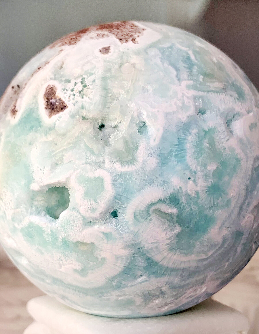 블루 아라고나이트의 청량 하늘빛에 피스타치오 반 방울!