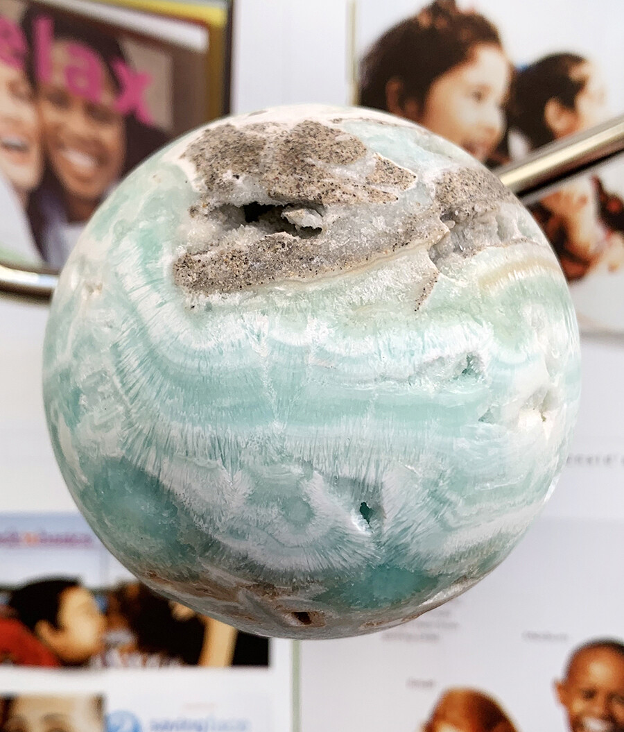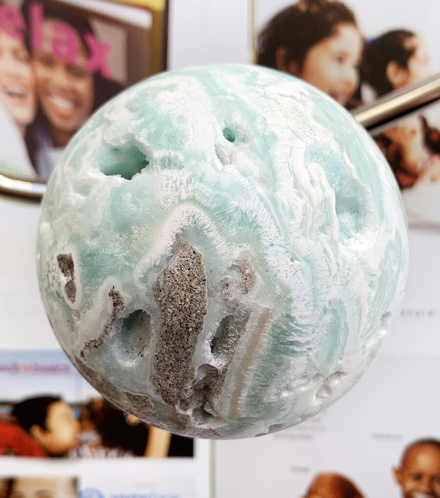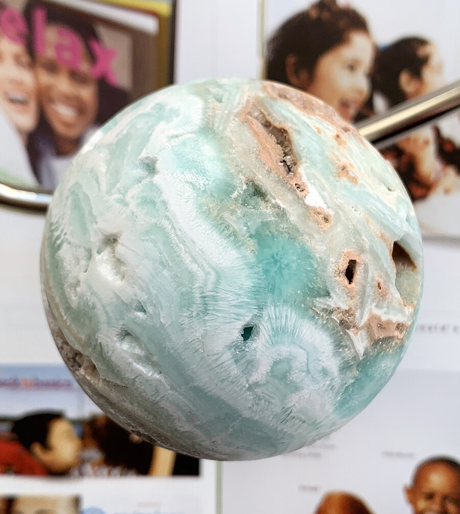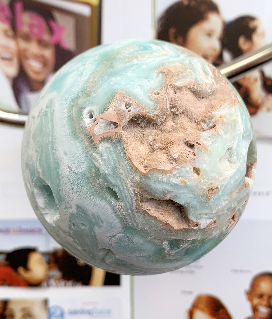 블루 아라고나이트의 청량 하늘빛에 피스타치오 반 방울!