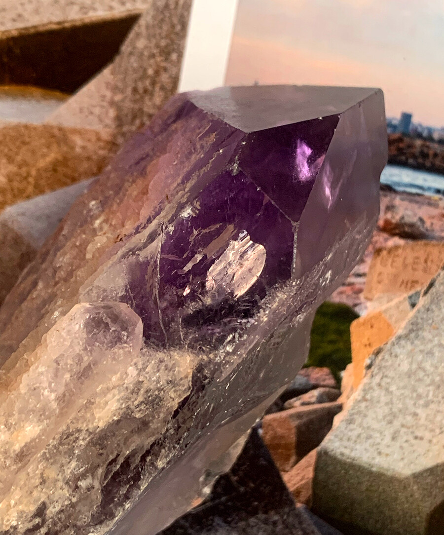 진하고 투명한 퍼플 클리어 아메시스트 안쪽으로