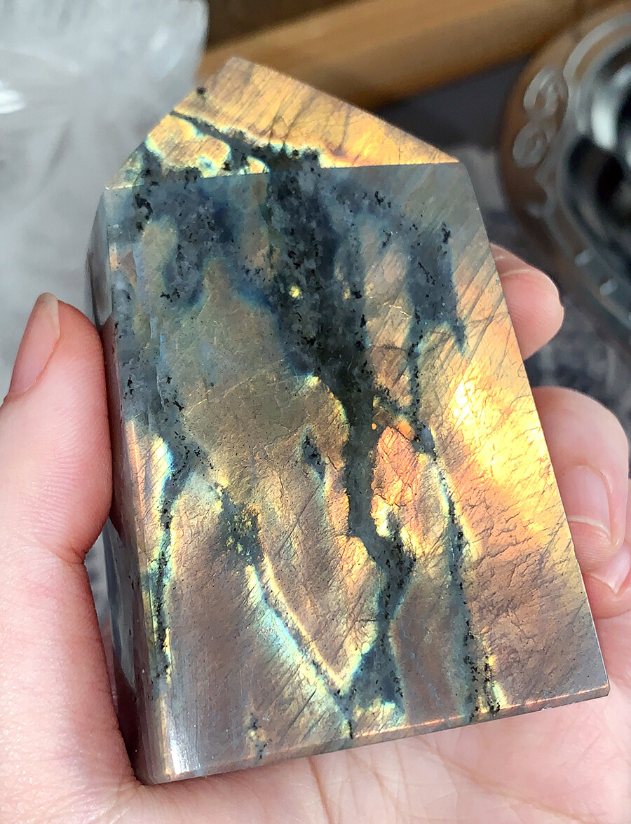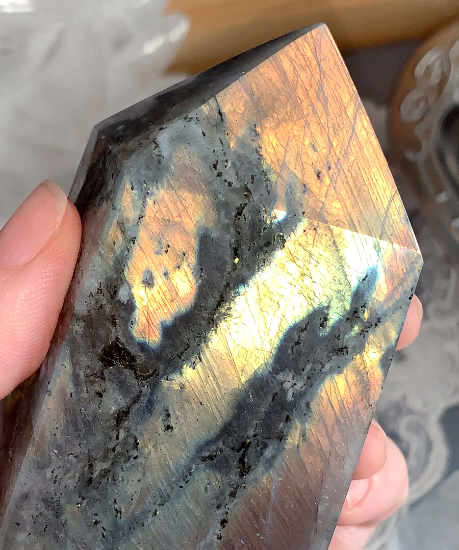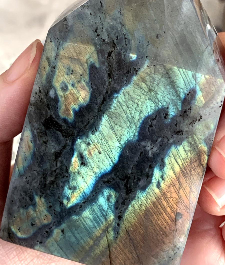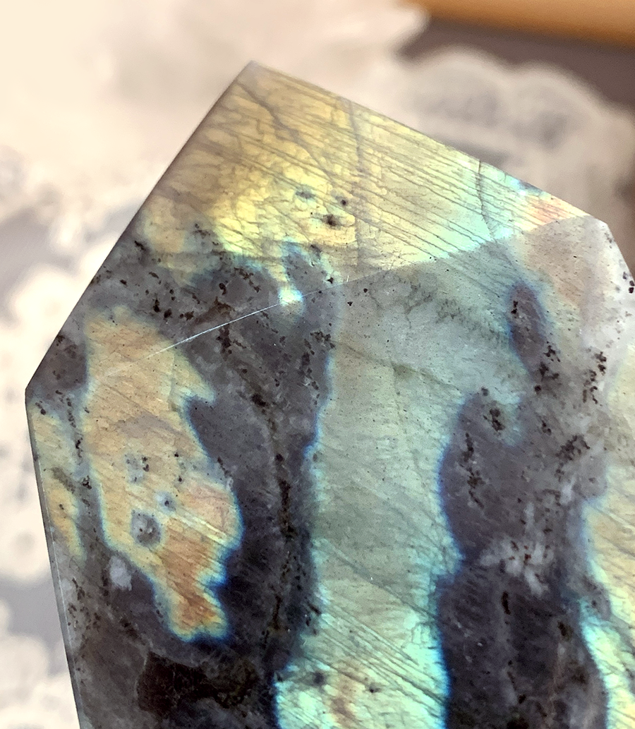 멋진 지구 조각 래브라도라이트의 강력한 에너지를