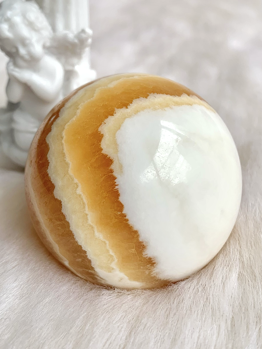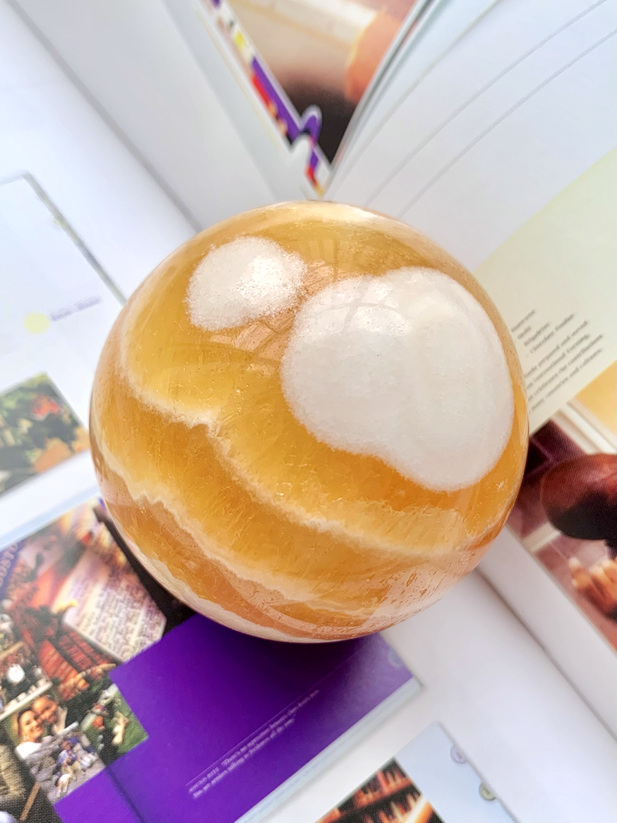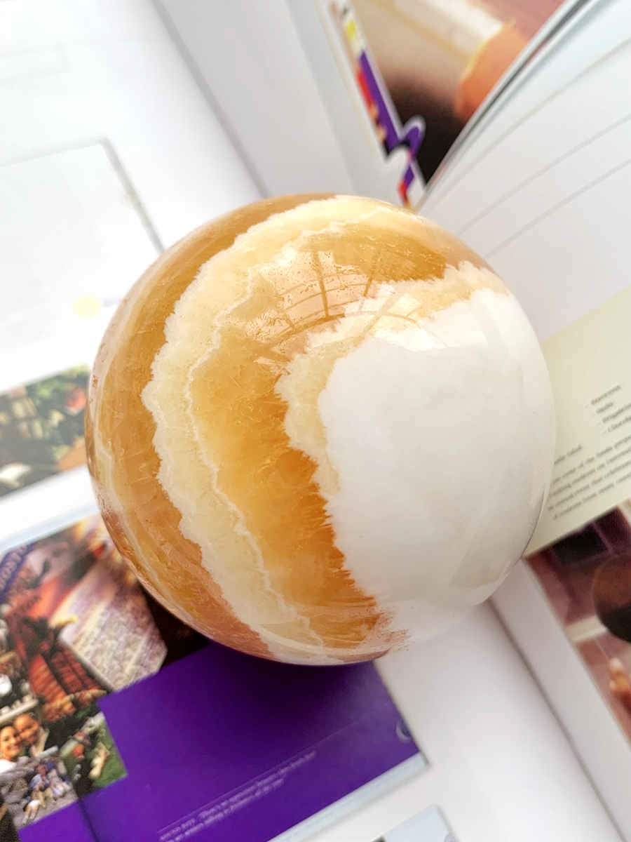 HQ banded orange calcite cloud sphere