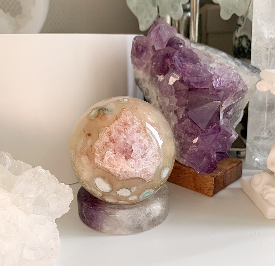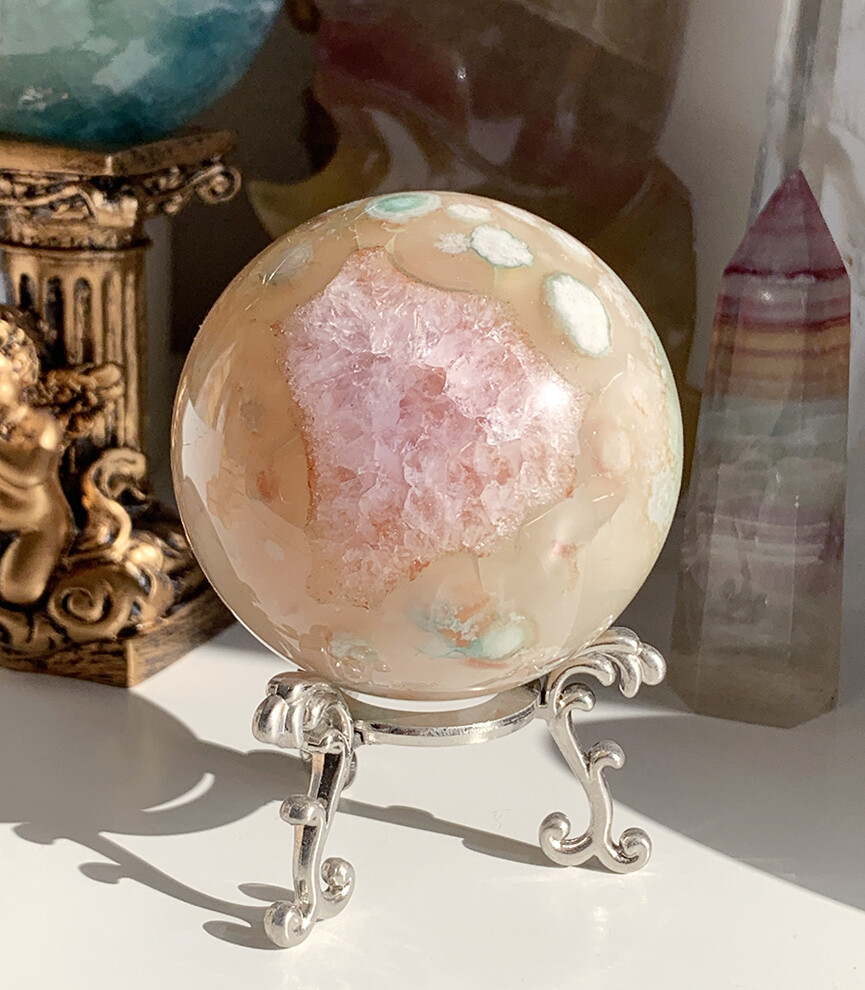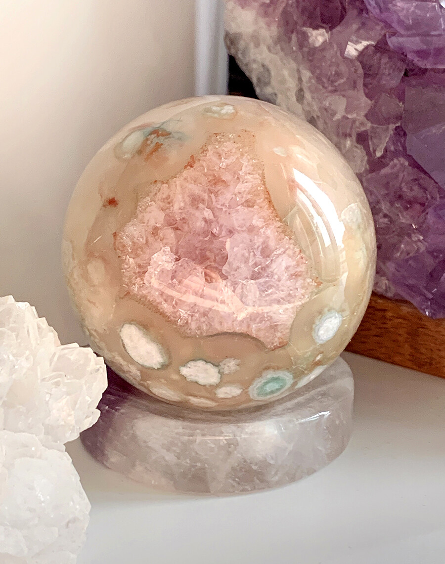 pink druzy jelly flower agate