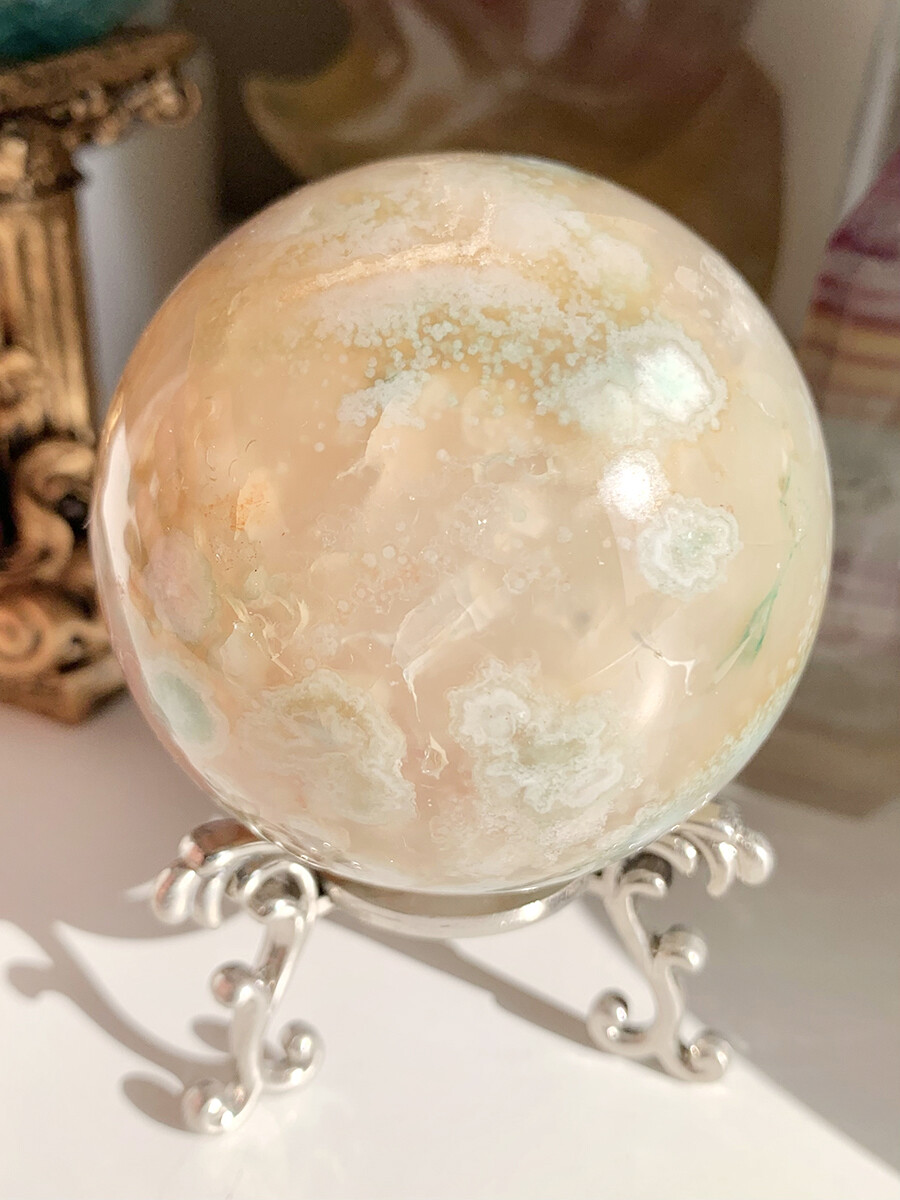 따뜻하고 부드러운 베이지톤의 아게이트 위