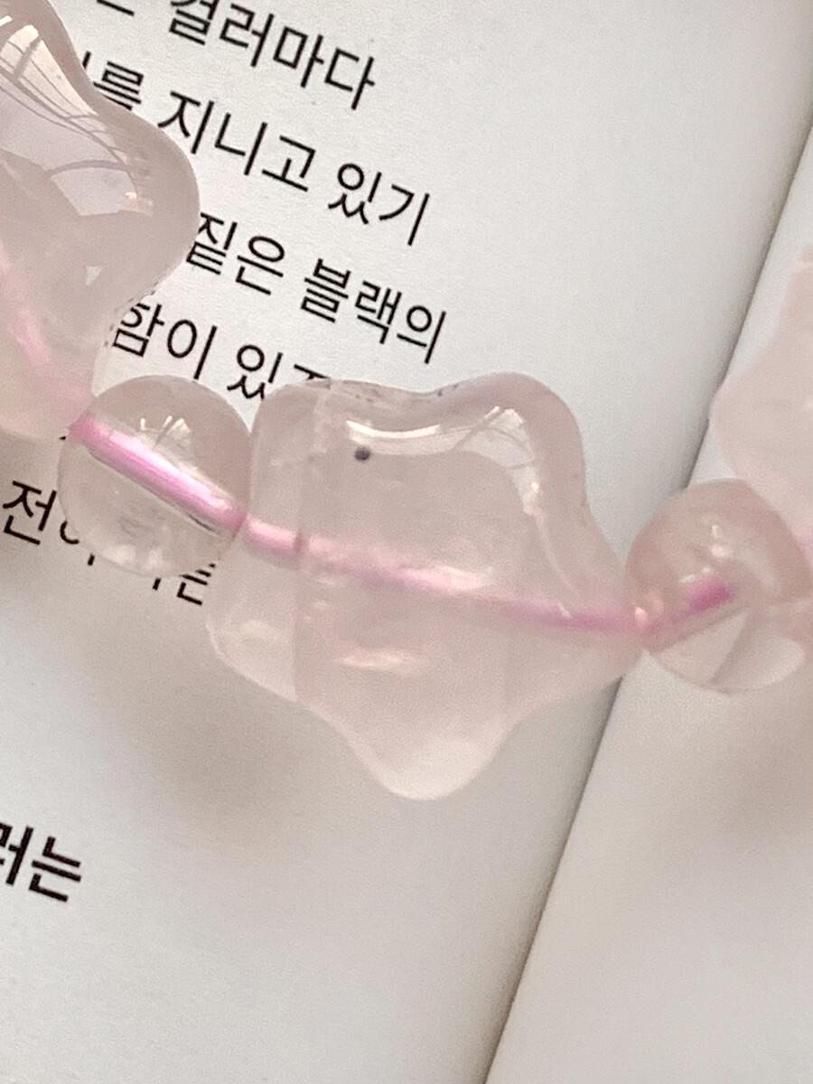 size : 비즈 star 15mm, round 7.5mm / 손목둘레 17cm내외 추천(조임 없는 착용감)