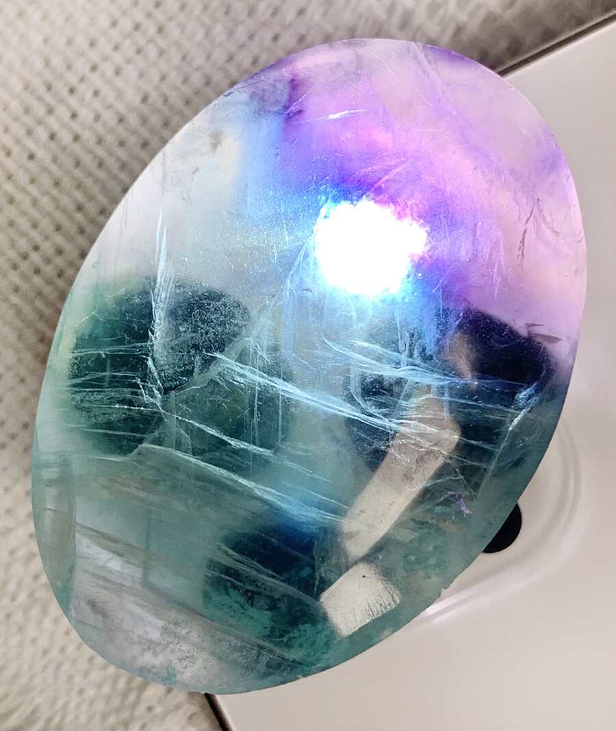 이 레인보우 플로라이트 팜스톤도 그랬어요