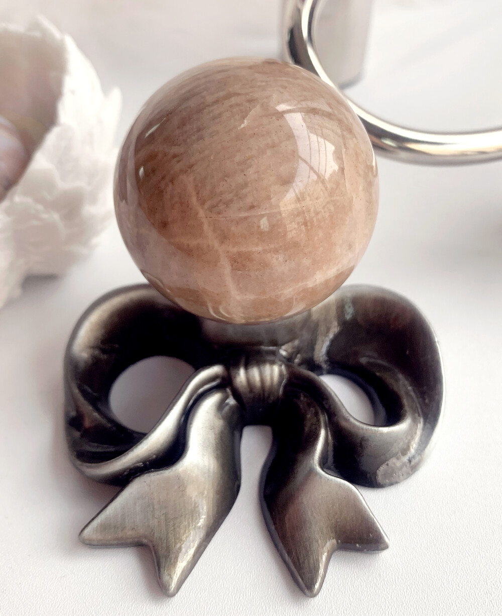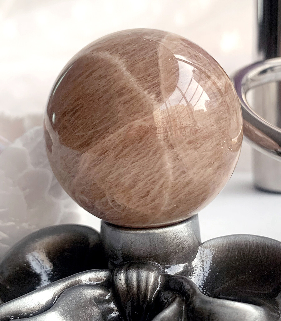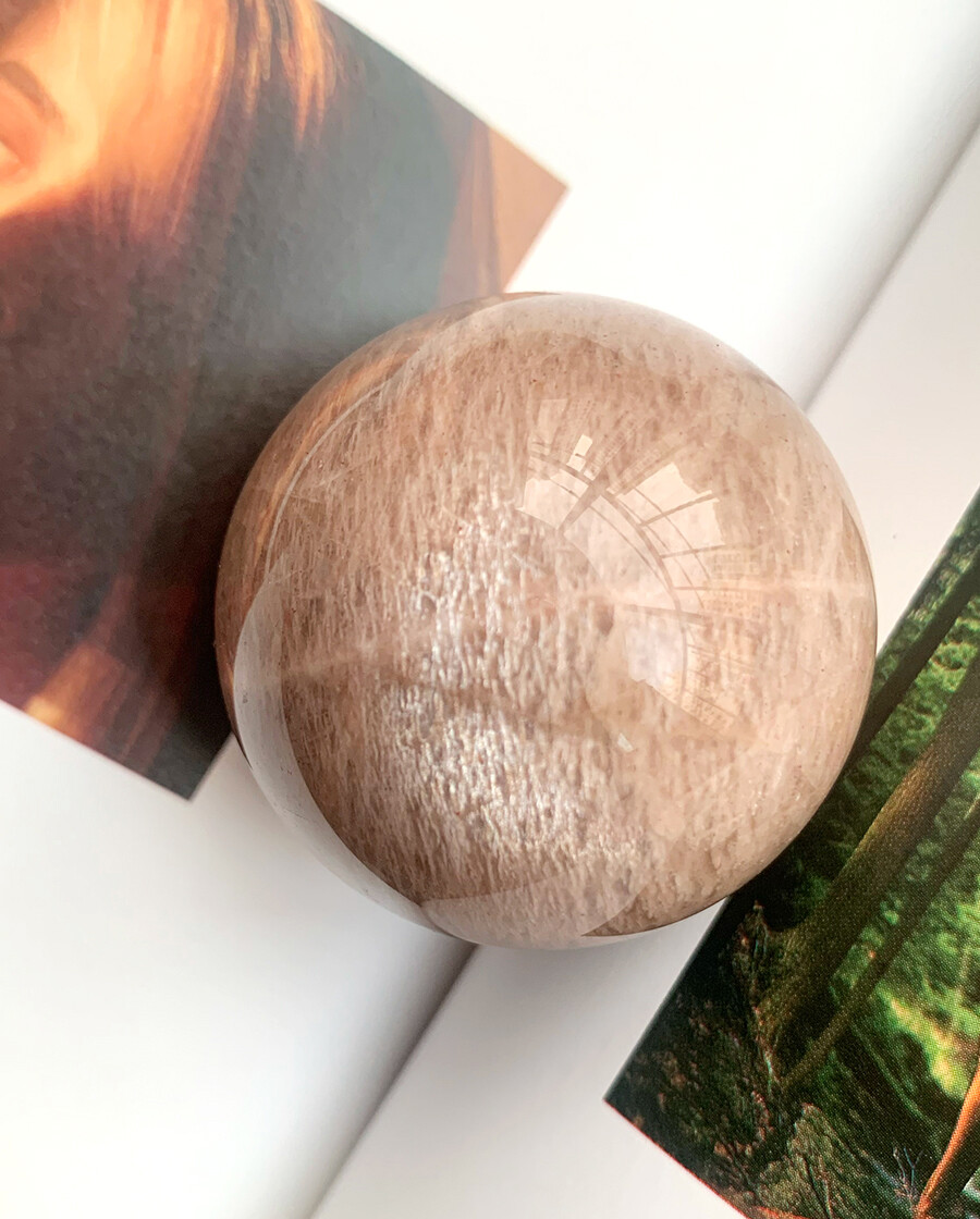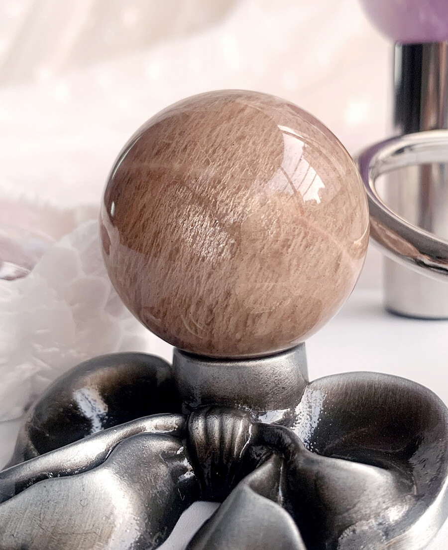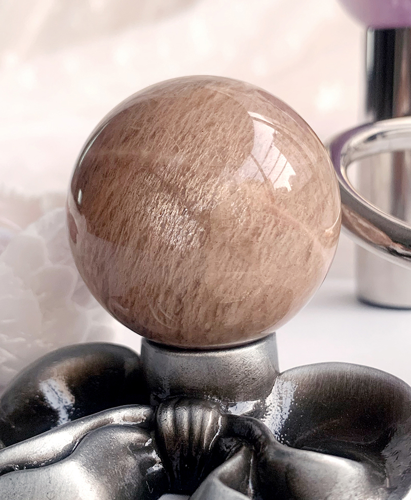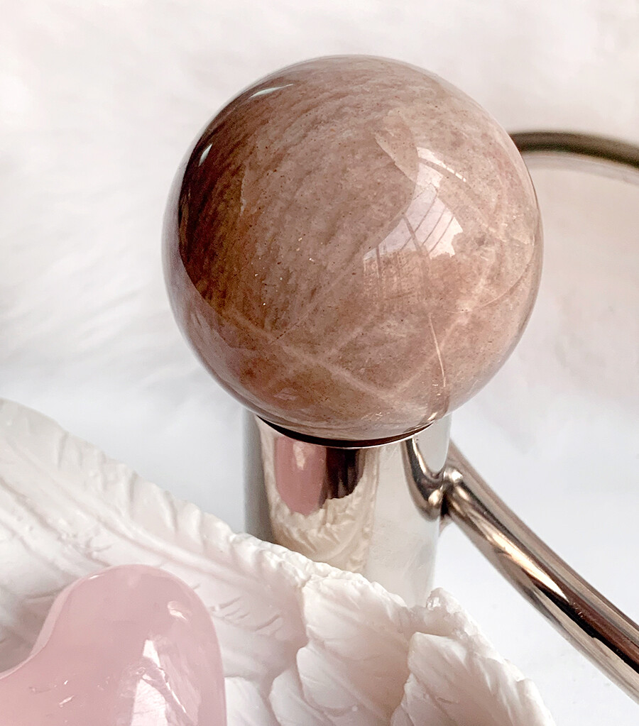 silver flash peach moonstone sphrer