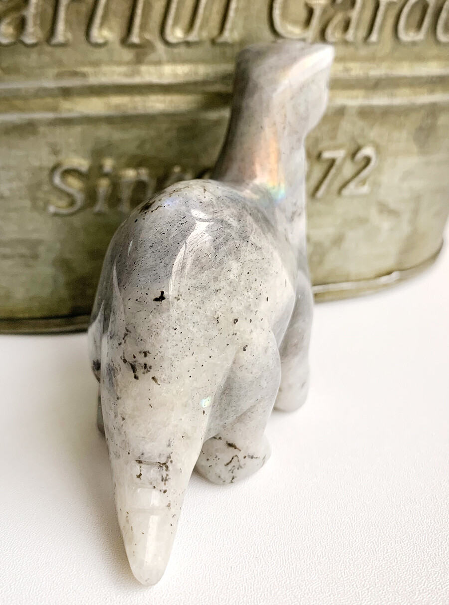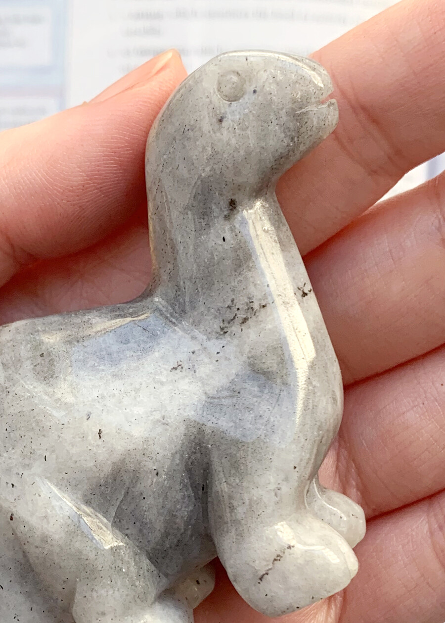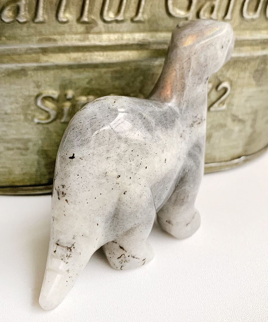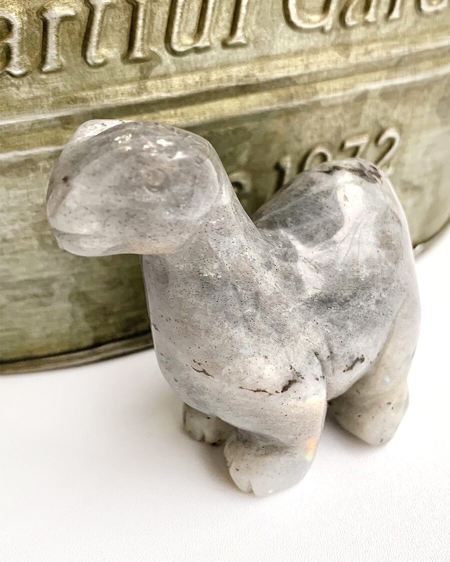 이 공룡은 밝고 옅은 그레이 톤의 래브라도라이트로