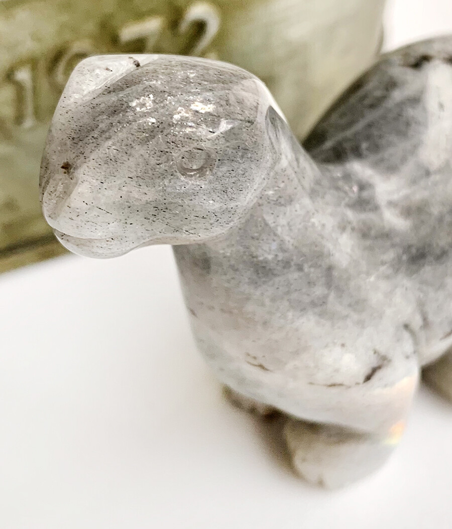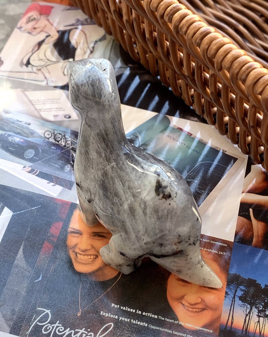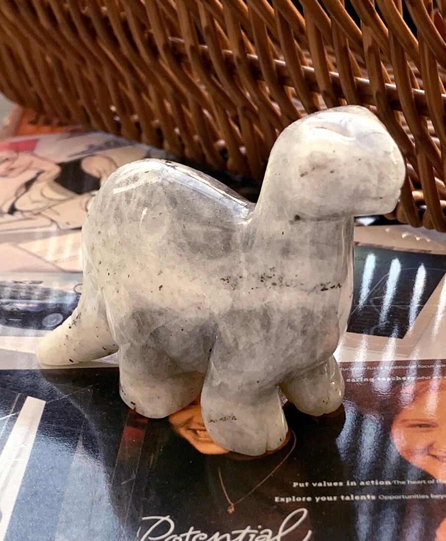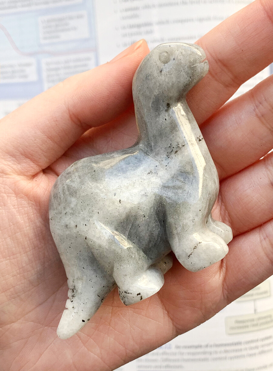 이 공룡은 밝고 옅은 그레이 톤의 래브라도라이트로