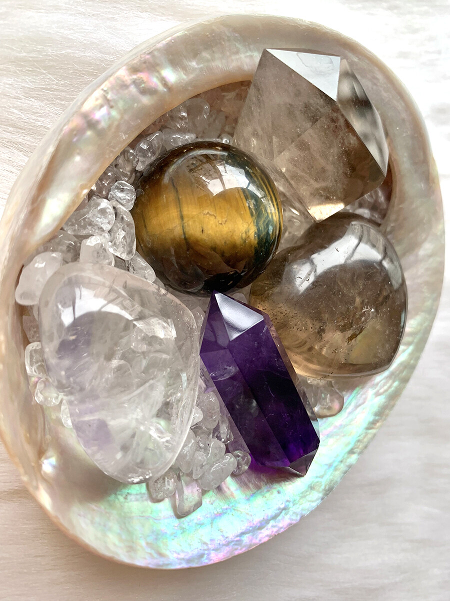 sea shell plate 와 클리어쿼츠 칩 까지 다함께 구성되어