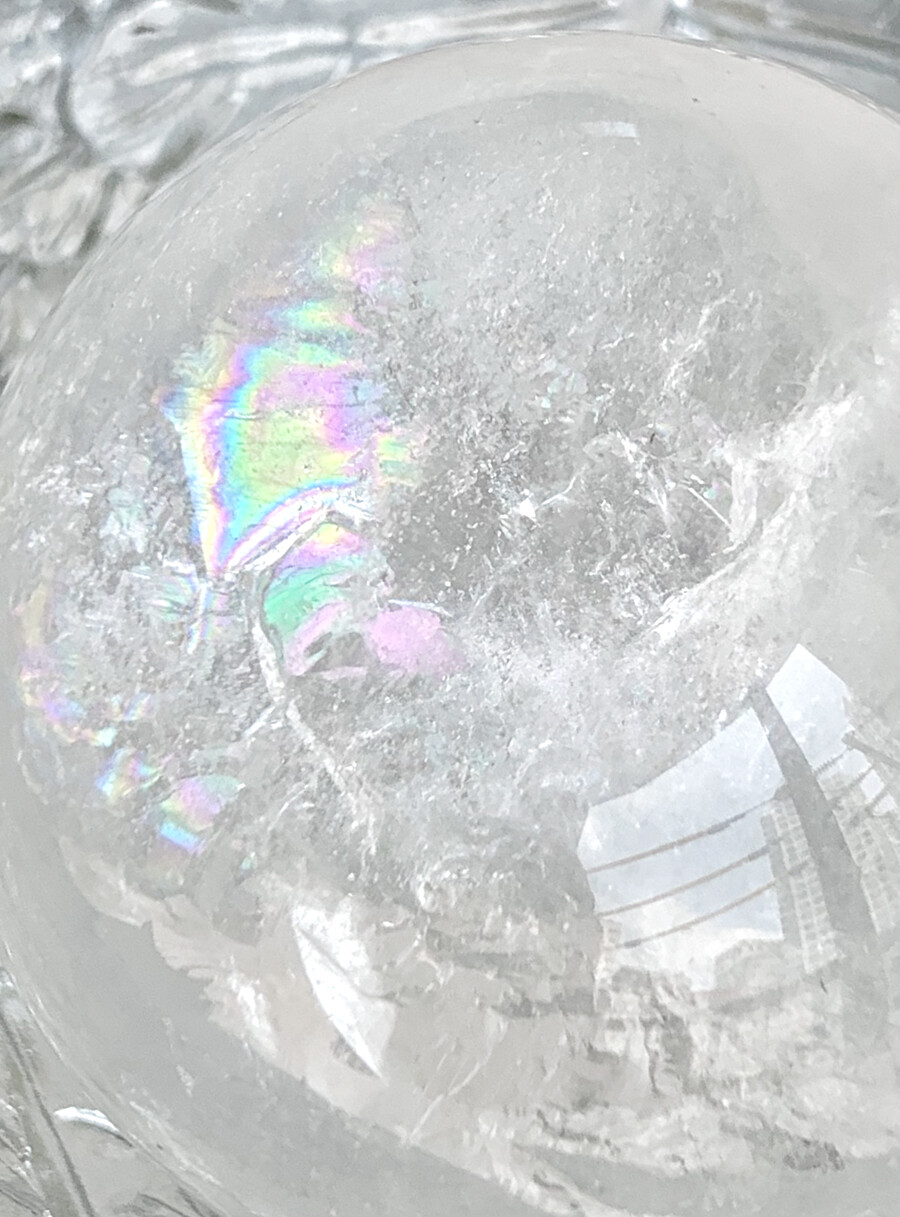 투명한 내부 결 사이로 아주 큰 무지개가 딱!