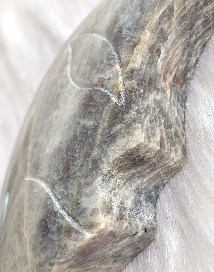매끈한 표면 위 위엄있는 얼굴이 새겨진 모습
