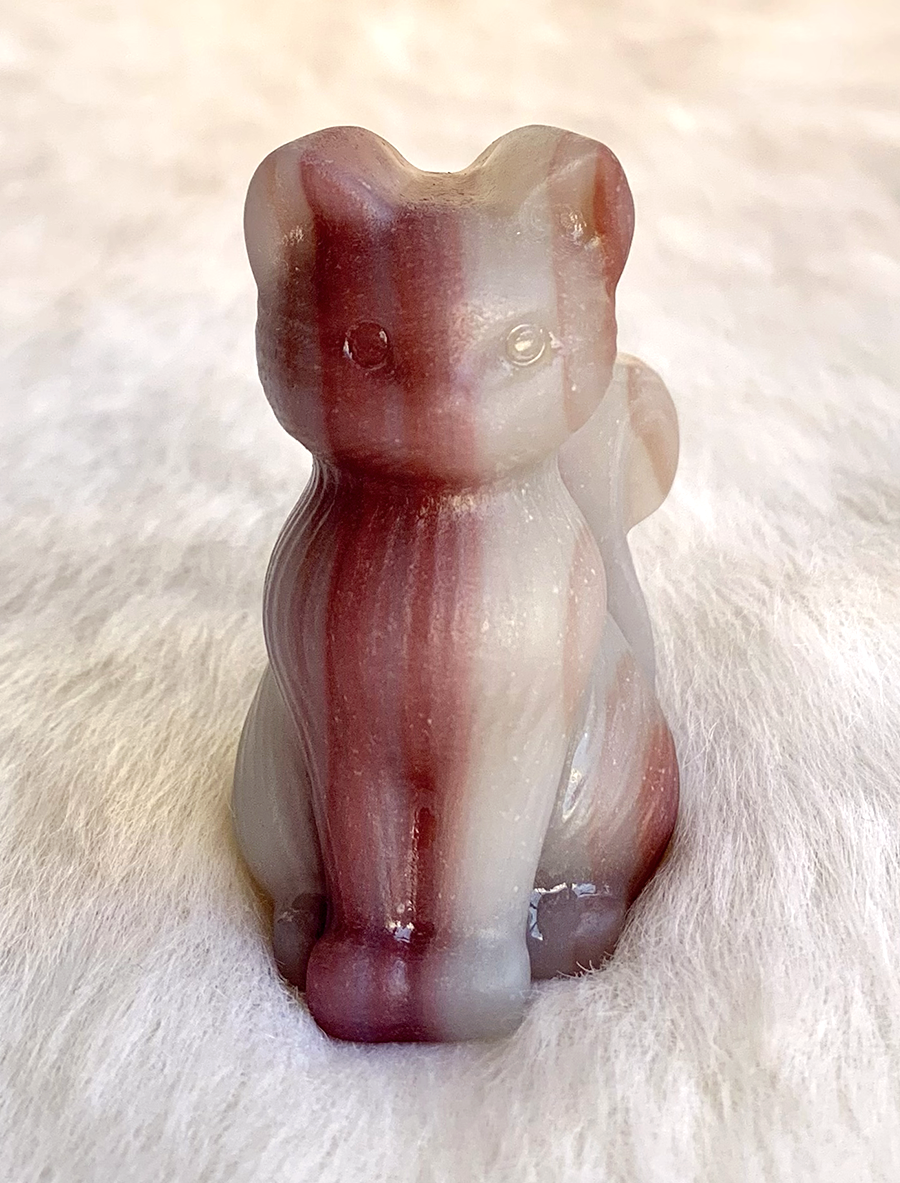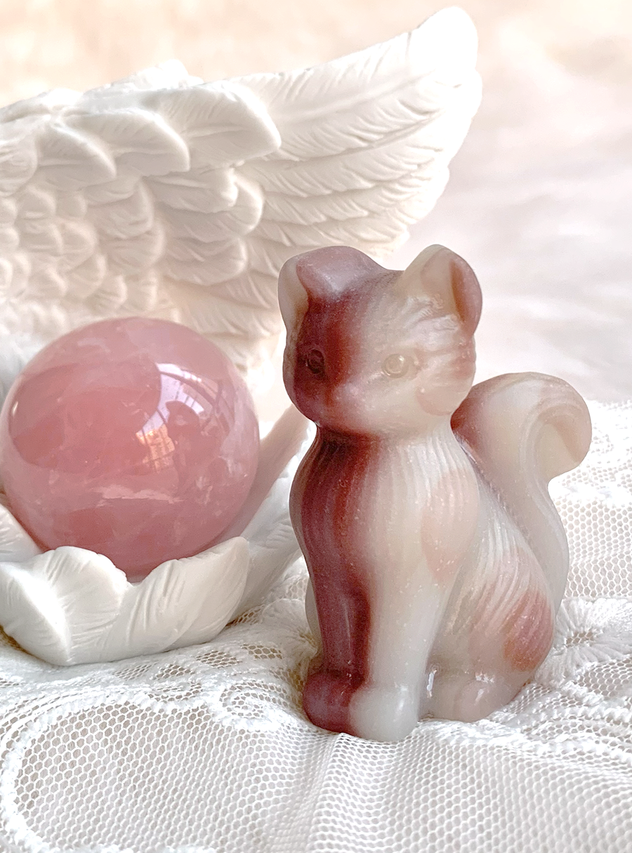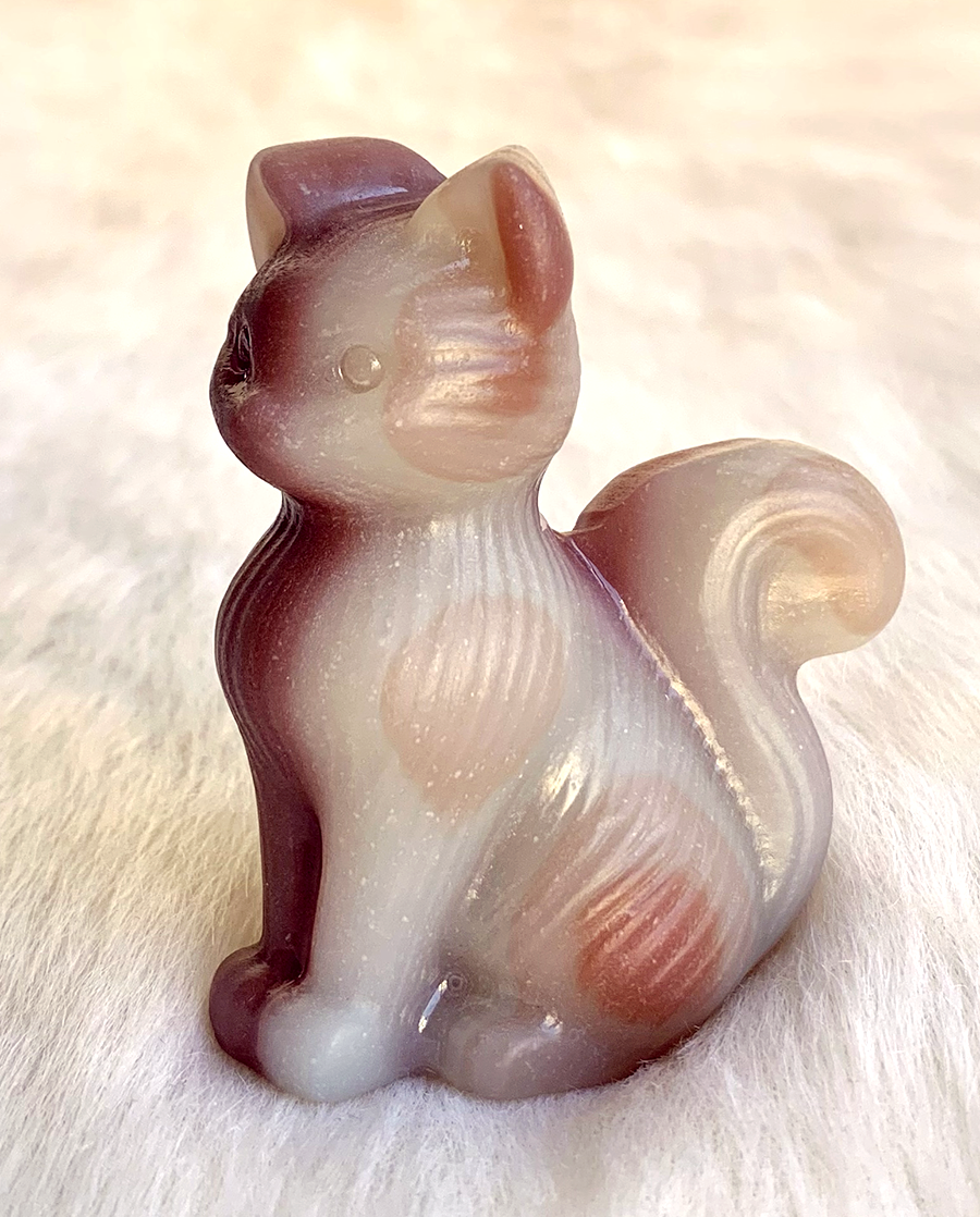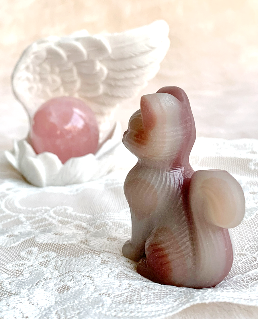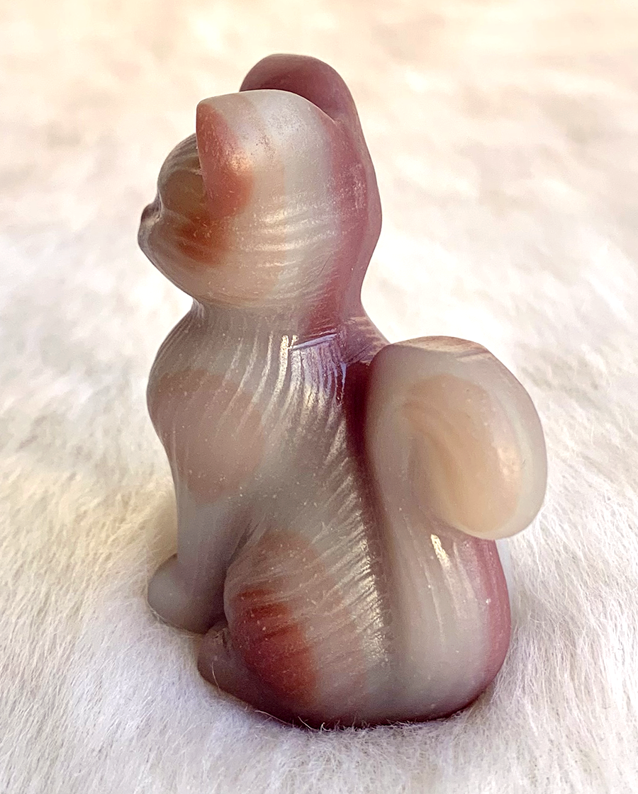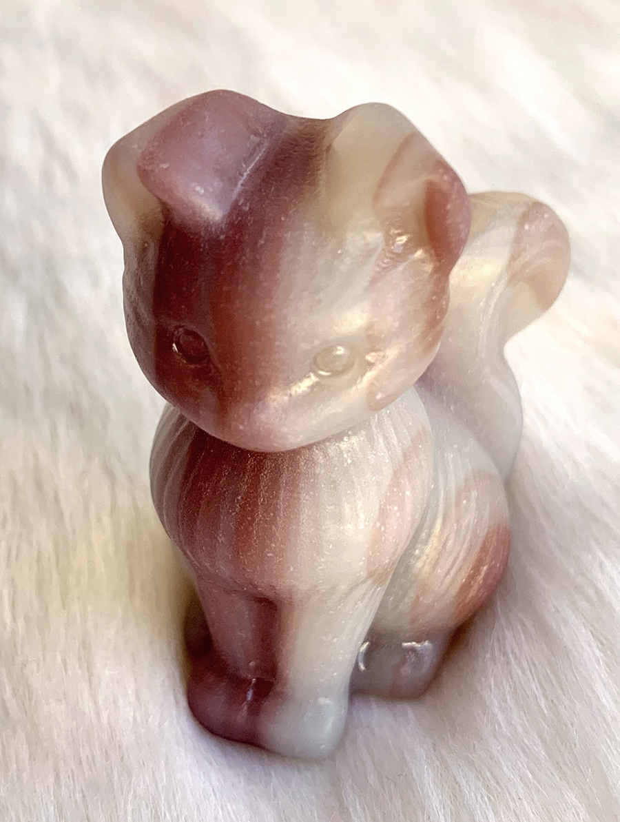 pink pistachio calcite sitting cat