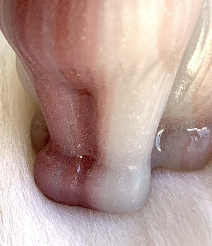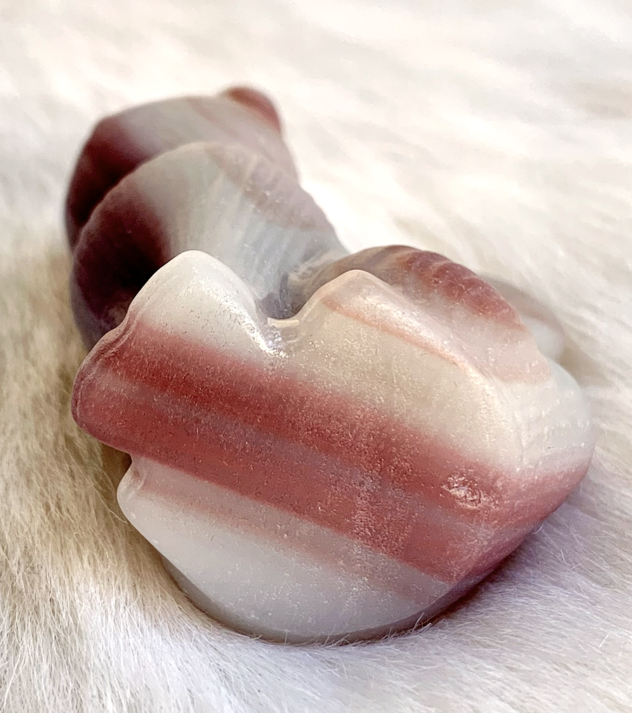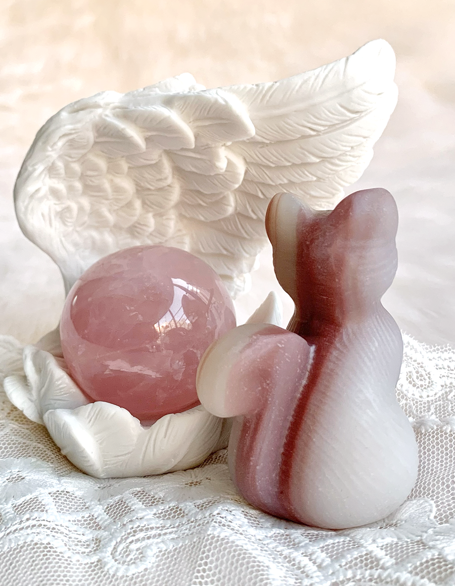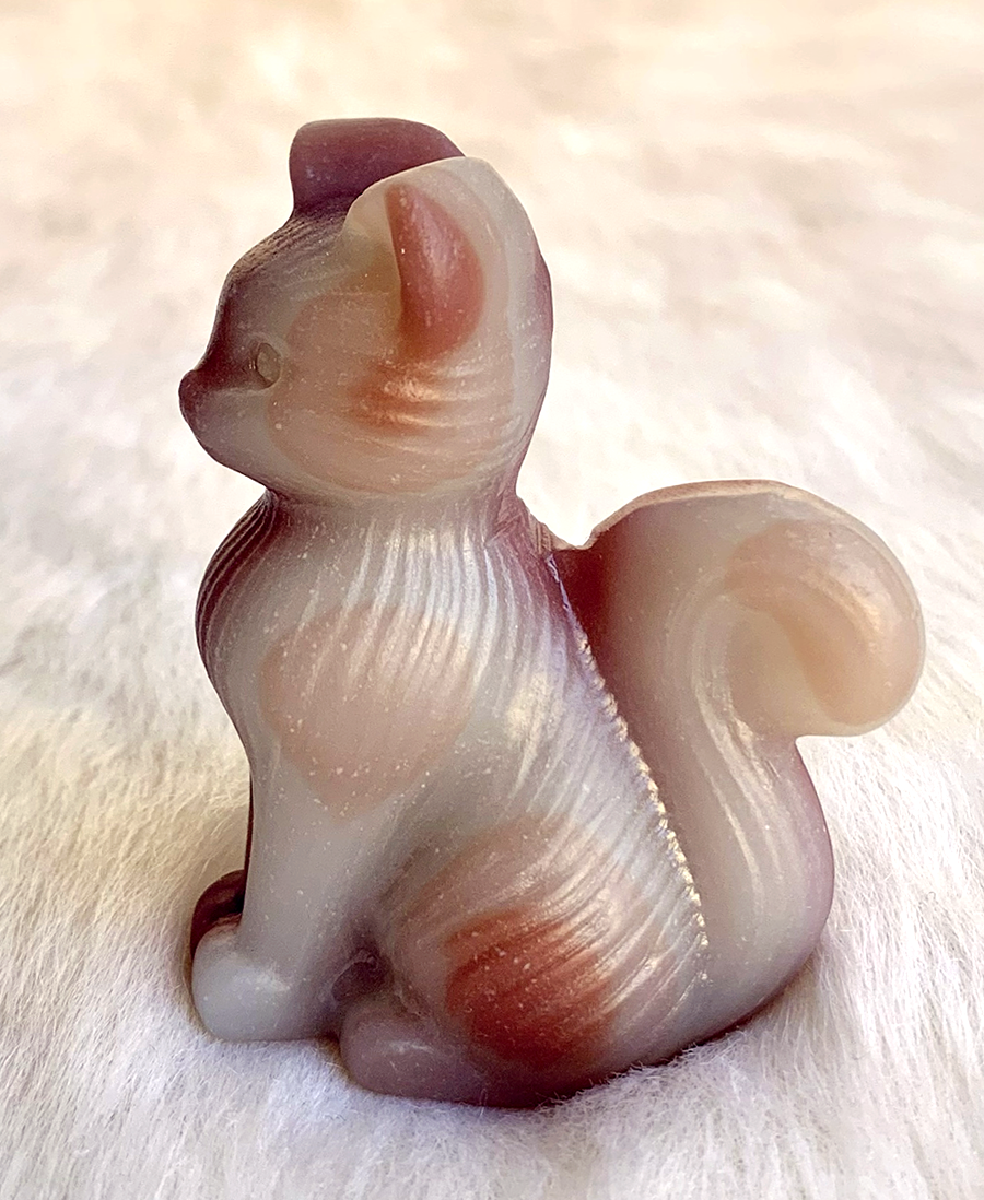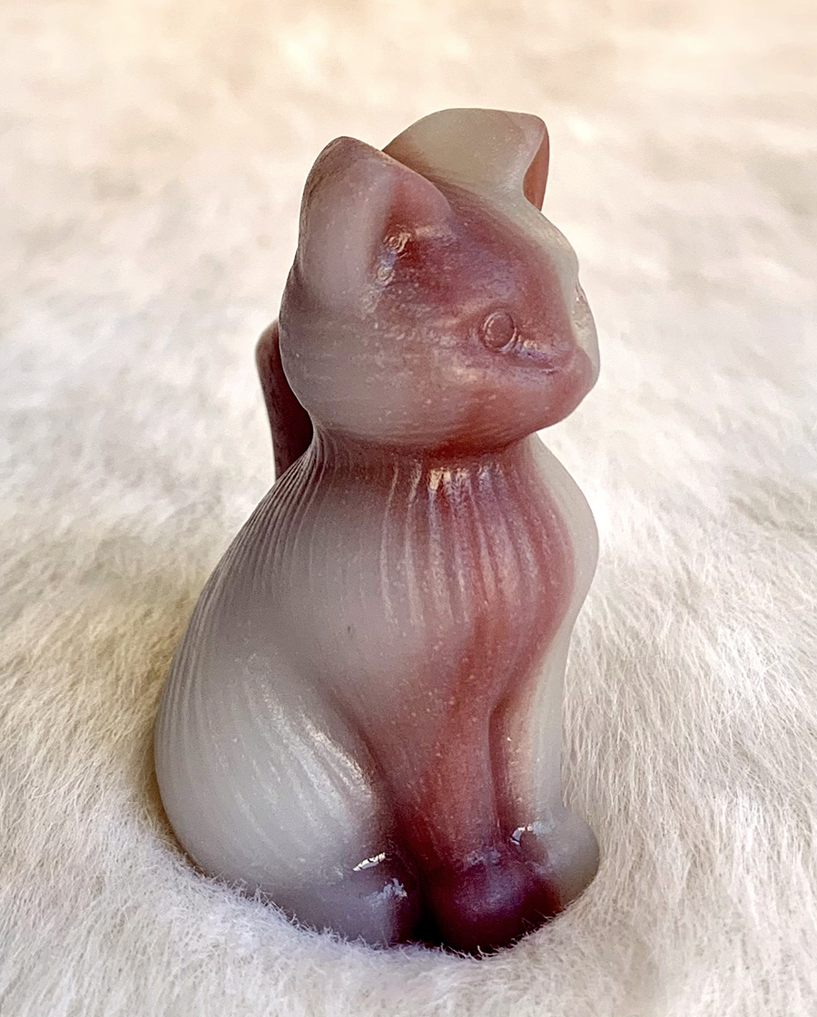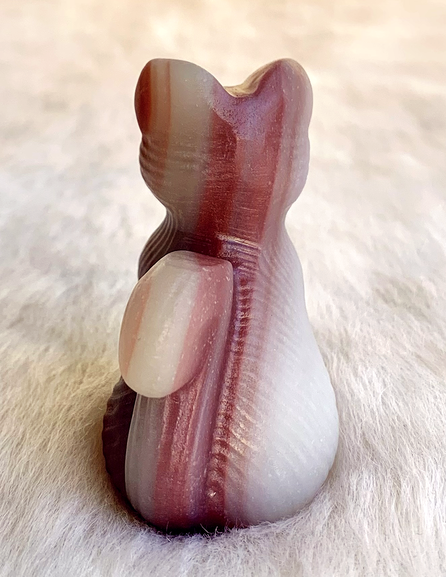 pink pistachio calcite sitting cat