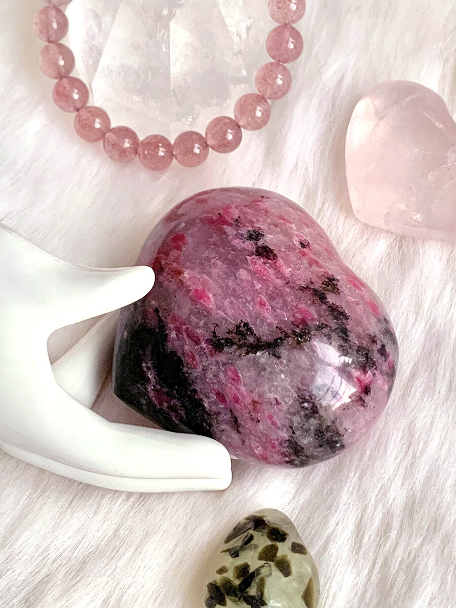 icy rhodonite puffy heart