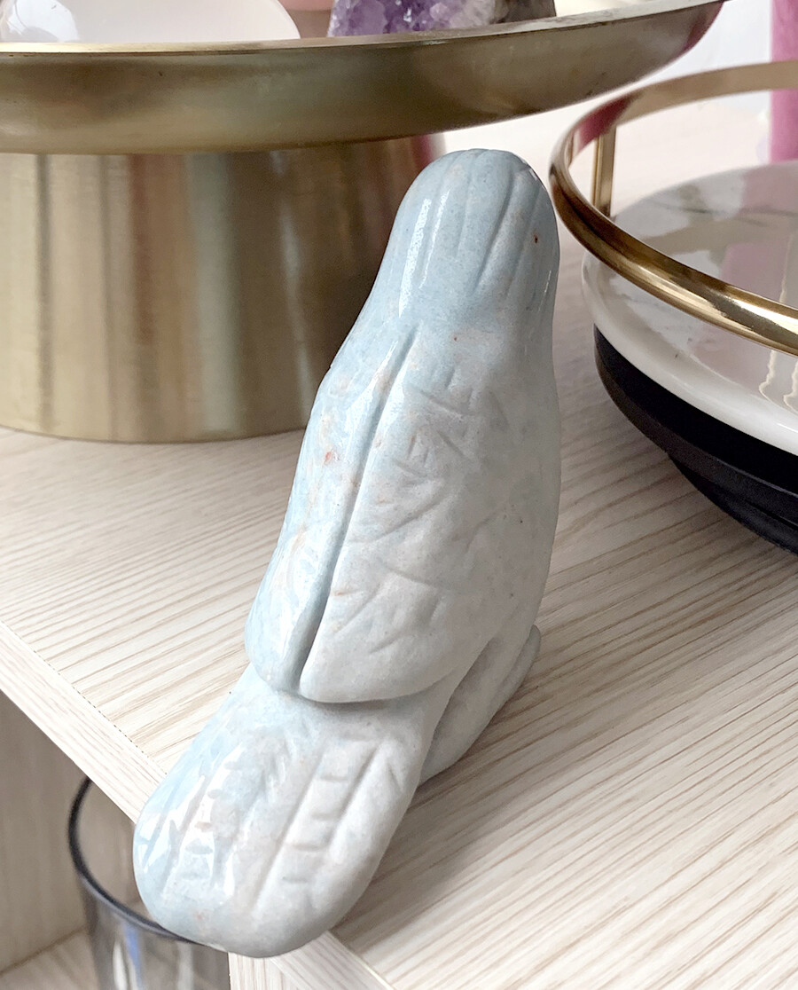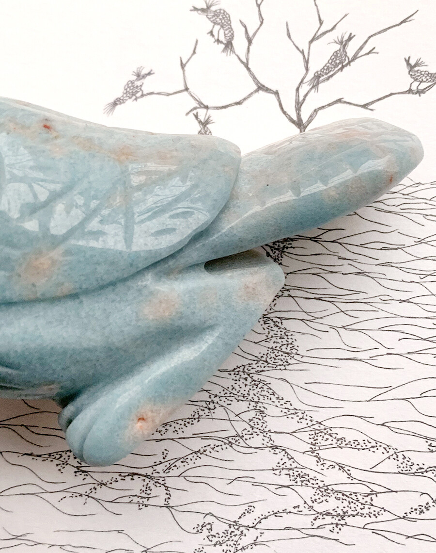 푸른 몸통 위 살찍 핑크빛이 도는 패턴까지 모두 인상적 🪽